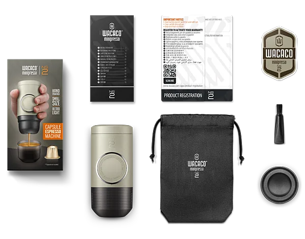 Minipresso NS2 آخرین نسخه از Minipresso محبوب است. در مقایسه با نسخه قبلی خود، نسخه NS2 کوچکتر، سبک تر و فشار 18 بار است. قهوه ساز قابل حمل Wacaco Minipresso NS2 اسپرسوی عالی را در جاده ها بدون نیاز به برق تهیه می کند. با پمپاژ ساده فشار را تا 18 بار برسانید. سازگاری: کپسول های نسپرسو اصلی یا کپسول های Sealpod قابل شارژ. مارک های دیگر کپسول ها (به عنوان مثال Lor) ممکن است به درستی کار نکنند. این دستگاه تنها 290 گرم وزن دارد و به لطف فشار 18 بار اسپرسو واقعی را با کرم و طعم عالی تهیه می کند. کیت همچنین حاوی کیسه پارچه، فنجان قهوه داخلی و برس تمیز کننده است. قهوه ساز قابل حمل Minipresso از پلاستیک بادوام و بدون محتوای BPA ساخته شده است. پلاستیک مورد استفاده در مدل NS2 سازگار با محیط زیست است و تا حدی از پلاستیک بر پایه گندم ساخته شده است. پورتافیلتر از فولاد ضد زنگ ساخته شده است. دستگاه قهوه با هنجارهای ایمنی بین المللی FDA، EU، RoHS، LFGB، GB مطابقت دارد.